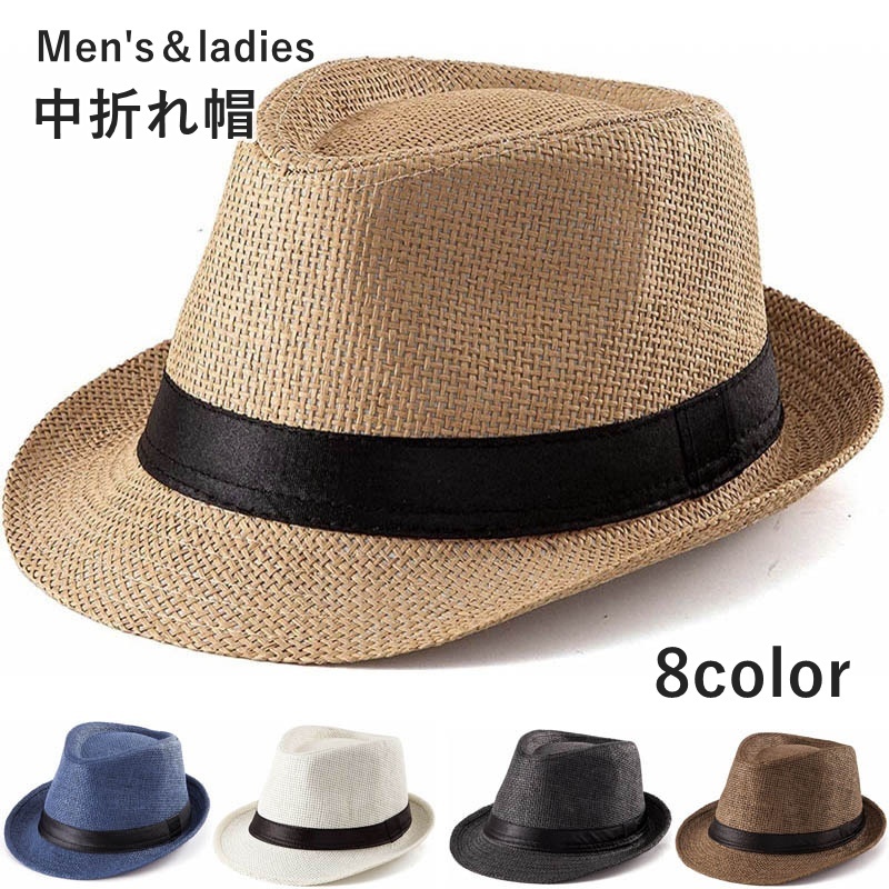 中折れ帽 中折れハット 麦わら帽子 メンズ レディース 男性 女性 男女兼用 帽子 ストローハット メッシュ 夏 通気性