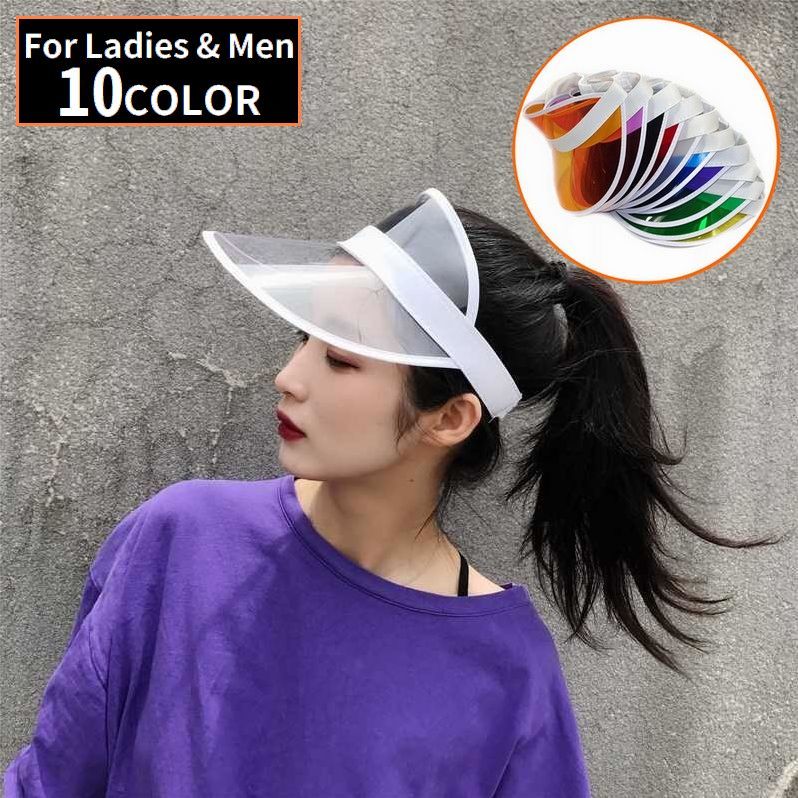 サンバイザー レディース メンズ 男女兼用 キャップ 帽子 つば広 透明クリア 無地 日よけ UVカット 紫外線対策 日焼け防止