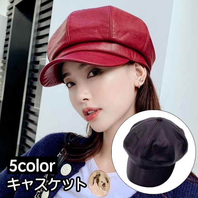 キャスケット 帽子 レディース 女性 レザー調 フェイクレザー 無地 シンプル 日除け カジュアル カッコいい おしゃれ ファッション小物 お出掛け