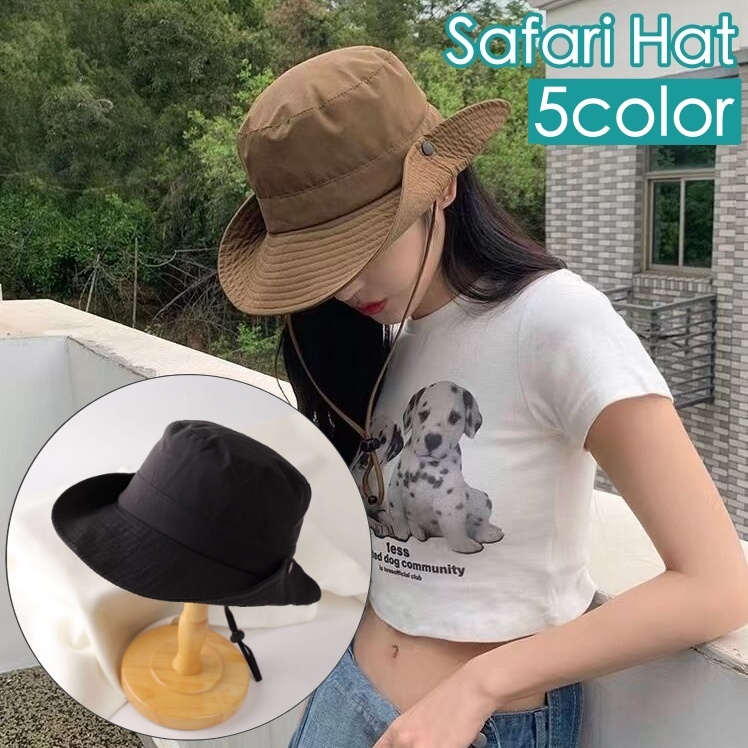 サファリハット 帽子 レディース 女性 ぼうし アウトドア シンプル 無地 あご紐 カジュアル おしゃれ 日除け ファッション小物