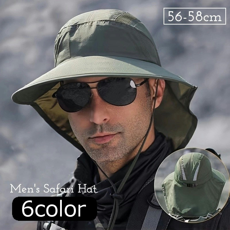 サファリハット メンズ 帽子 アドベンチャーハット つば広 首 ベルト 調節可能 あご紐 シンプル 無地 メッシュ かっこいい おしゃれ アウトドア