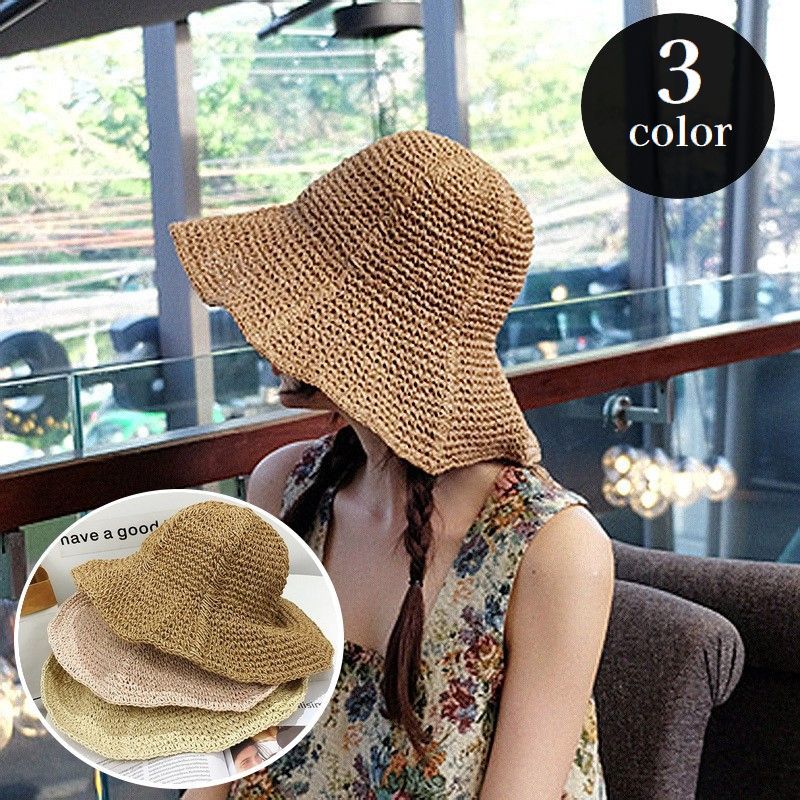 麦わら帽子 ストローハット つば広 レディース 女性用 ぼうし 折りたたみ 日除け 紫外線対策 UV対策 婦人用 折り畳み シンプル 可愛い おしゃれ