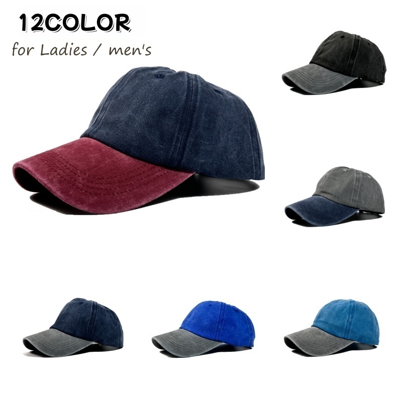 キャップ レディース メンズ 帽子 キャップ帽 野球帽 ウォッシュ シンプル 無地 バイカラー かわいい かっこいい おしゃれ カラバリ豊富 女性 女