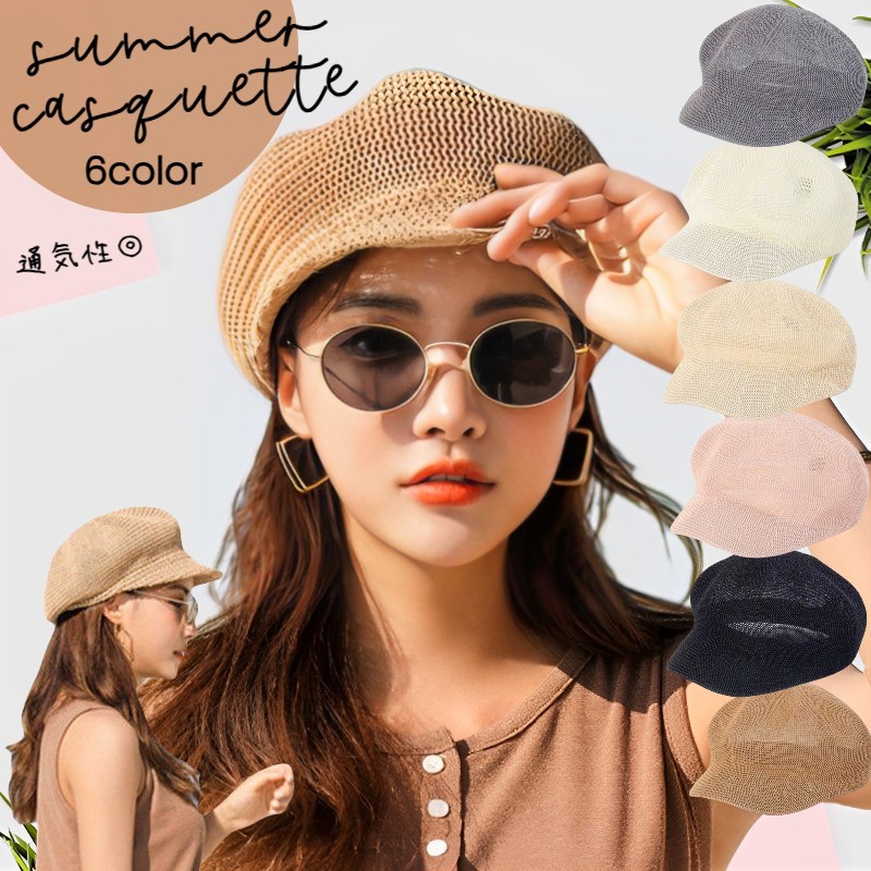 見た目にも涼しげなキャスケット帽。