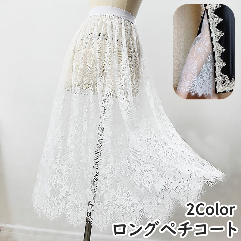 ペチコート インナースカート ロング 丈80cm レディース 女性 婦人 Aライン レース 下着 透け防止 レイヤード 重ね着風 シンプル 無地 単色