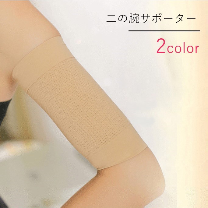 二の腕サポーター 両腕用 1ペア 二の腕ニッパー レディース 女性 インナー シェイパー 引き締め 無地 ベージュ ブラック シンプル 使いやすい 細