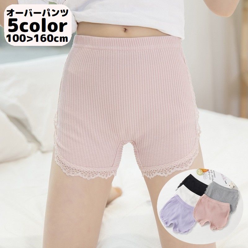 オーバーパンツ 子供 キッズ ジュニア 女の子 インナーパンツ ペチパンツ 見せパン 3分丈 スパッツ 薄手 無地 レース リブ