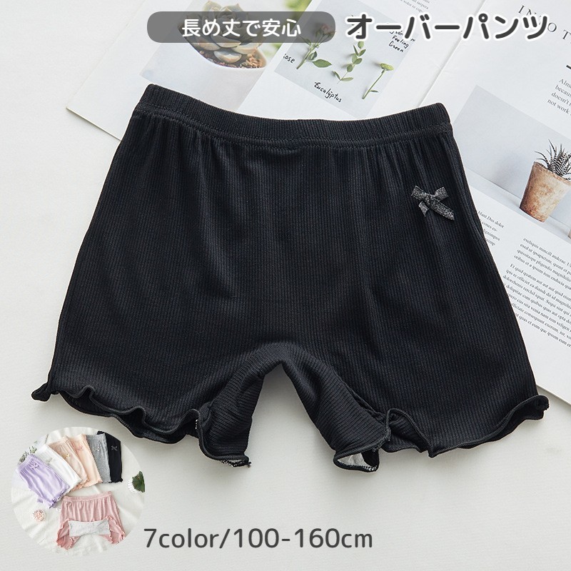 オーバーパンツ 1分丈 子供 キッズ ジュニア 女の子 インナーパンツ ペチパンツ 見せパン スパッツ 薄手 無地 リボン メロウフリル 3分丈