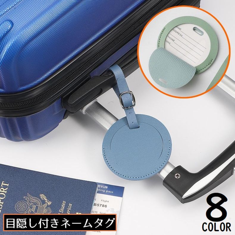 ネームタグ ラゲージタグ 荷物タグ ネームプレート 名札 PUレザー 目隠し 円形 飛行機 スーツケース バッグ 旅行 トラベル