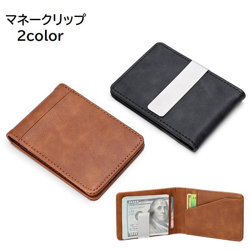 マネークリップ メンズ 男性用 紳士 財布 お札入れ カードケース 二つ折り カード入れ スリム コンパクト フェイクレザー レザー調 シンプル おし
