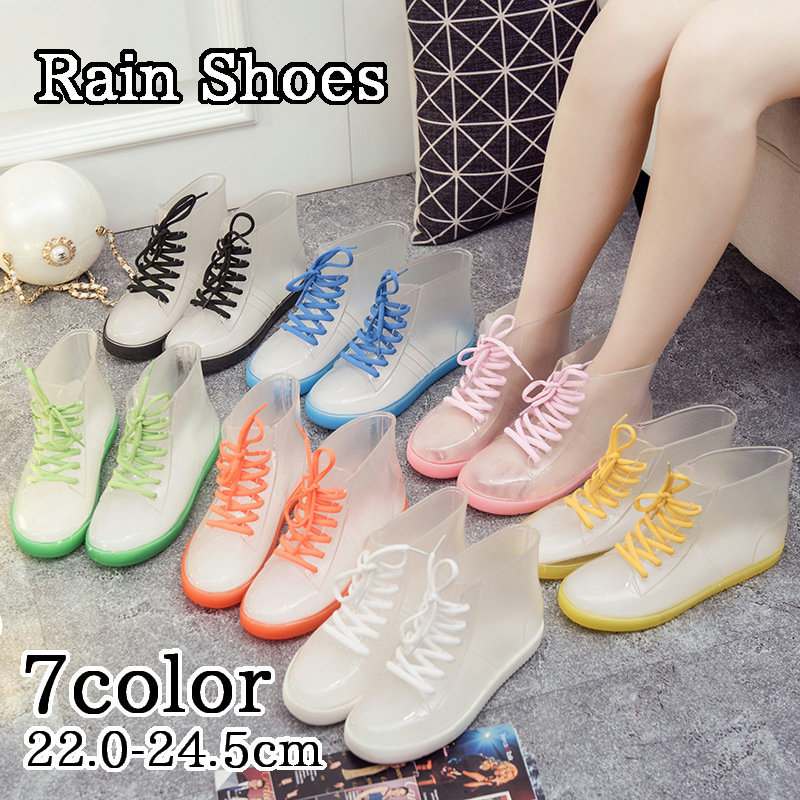レインシューズ レインスニーカー 防水スニーカー レディース 女性用 婦人用 透明 クリア 雨の日に履ける 雨が染みない 紐付きデザイン フラット ヒ
