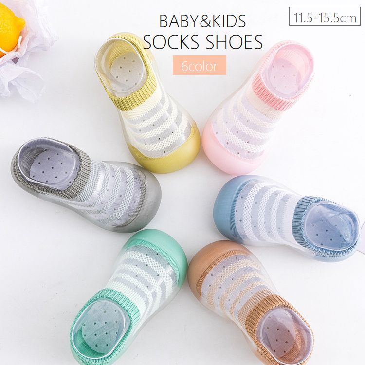 ソックスシューズ ファーストシューズ ベビー キッズ 赤ちゃん 子供 男の子 女の子 ボーダー柄 シアー 透け感 通気性 滑り止め付き ソフト 柔らか