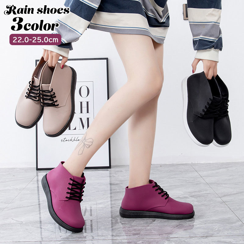 レインシューズ レインブーツ 雨靴 レディース 女性 ブーティー ショートブーツ 靴 くつ ラウンドトゥ レースアップ 防水 フラットシューズ