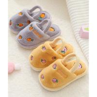 スリッパ ルームシューズ 子供用 キッズ ベビー 女の子 男の子 室内履き 前詰まり フラット フェイクファー ストラップ付き もこもこ ふわふわ 刺