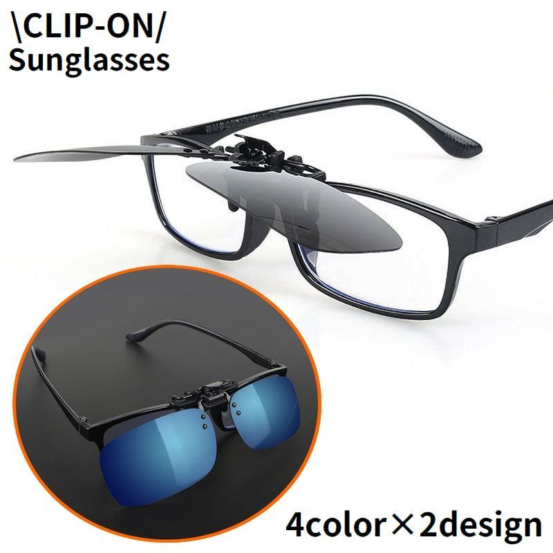 サングラス クリップオン 偏光レンズ UV400 紫外線カット 眼鏡の上から 跳ね上げ式 伊達メガネ 変色 夜間 ドライブ 運転