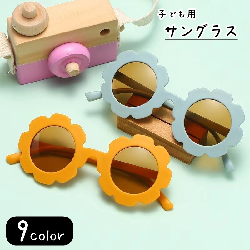 サングラス 子ども用 子供用 キッズ 女の子 男の子 ファッション雑貨 お花 フラワー ブラウン ブラック ピンク ブルー イエロー シンプル カジュ