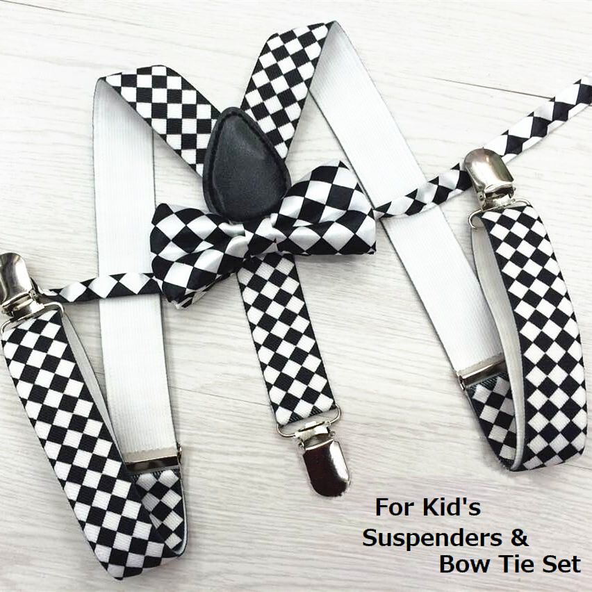 サスペンダー 蝶ネクタイ 2点セット キッズ 子供用 男の子 女の子 ダイヤ柄 チェック フォーマル おしゃれ 入学式 卒業式 結婚式 発表会