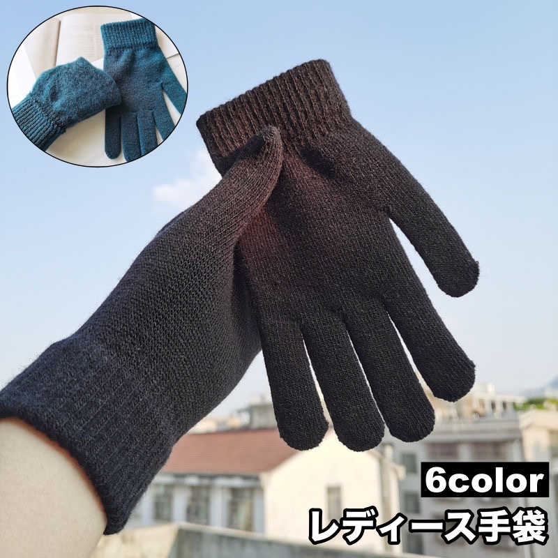 手袋 ニットグローブ レディース 裏起毛 暖か 防寒 無地 5本指 リブ ハイゲージ 裏ボア シンプル ファッション小物