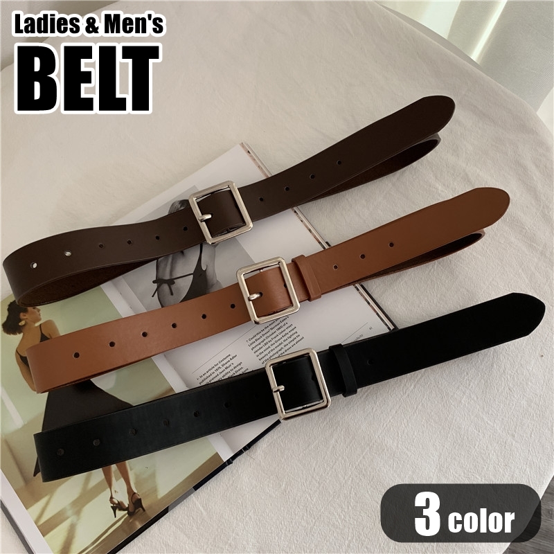 ベルト レディース 女性 メンズ 男性 ユニセックス 男女兼用 ペアルック お揃い ファッション雑貨 幅広 太め 四角バックル フェイクレザー PUレ