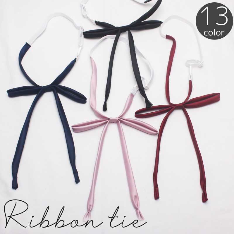 リボンタイ 紐リボン プレタイ ヒモタイ スクールリボン ワンタッチ ひも シルク風 無地 単色 シンプル 制服 セーラー服 ブレザー ブラウス 学生