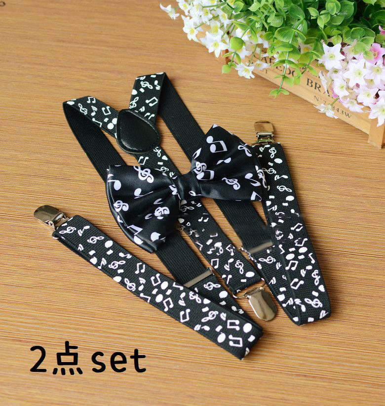 サスペンダー 蝶ネクタイ 2点セット メンズ レディース 音符 Y型 3クリップ 男性 女性 フォーマル おしゃれ かわいい ファッション小物