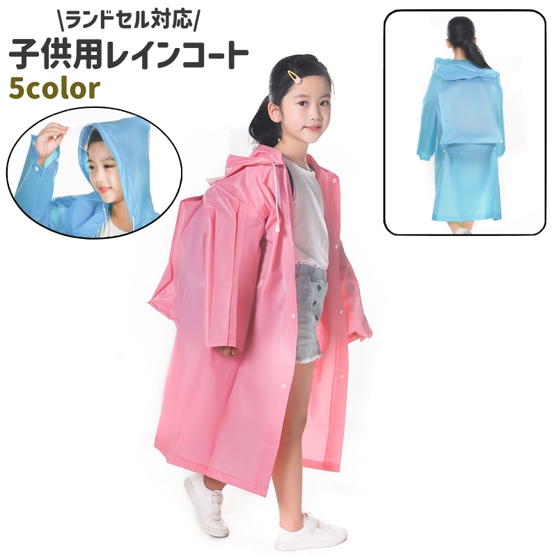 レインコート キッズ 子供 女の子 男の子 小学生 レインウェア 雨具 ランドセル対応 つば付き 収納袋付き ピンク 黄色 緑 無地 シンプル 防水