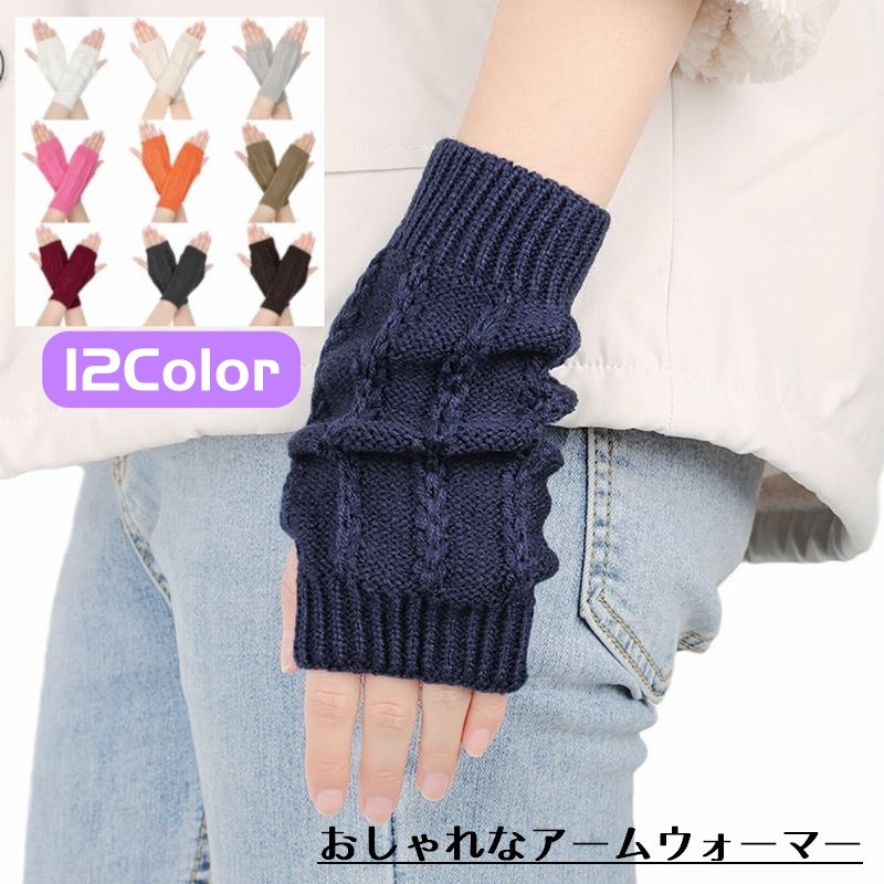 アームウォーマー レディース メンズ ニット ショート ハンドウォーマー 指なし スマホ手袋 シンプル おしゃれ