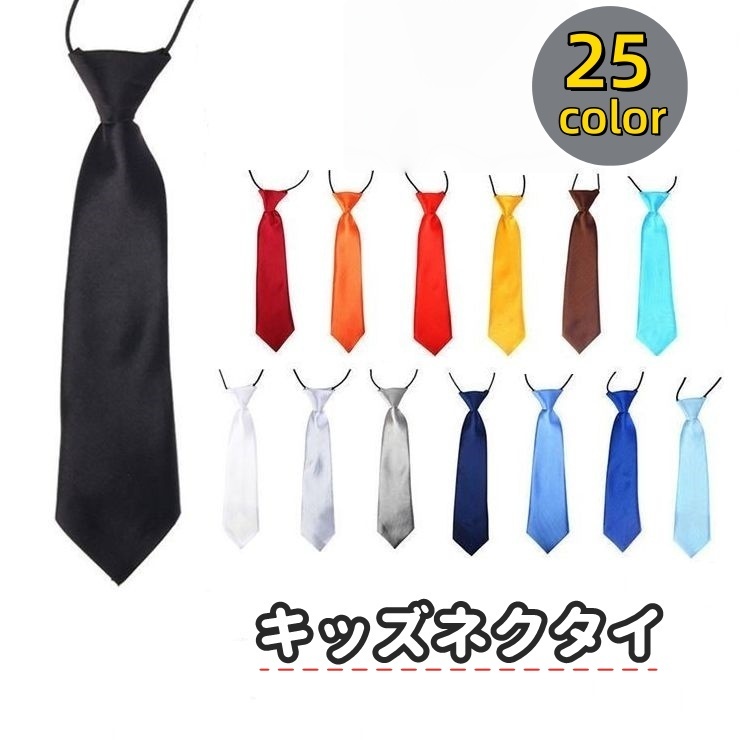 ネクタイ 28cm キッズ 子供 男の子 女の子 ワンタッチ ゴムバンド ファッション小物 無地 光沢感 サテン風 フォーマル 入学式 卒業式 簡単