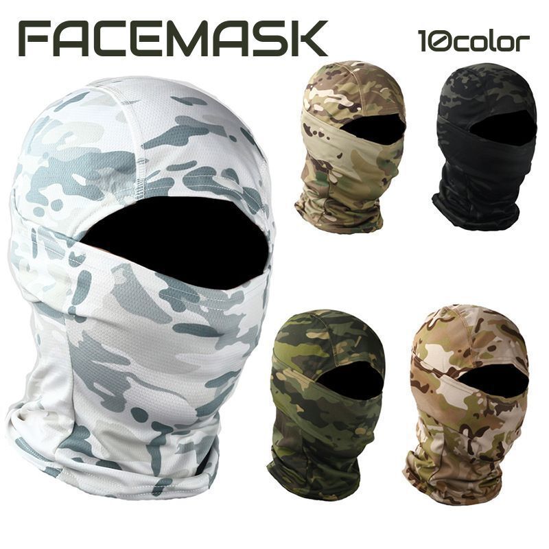 フェイスマスク フェイスカバー 目出し帽 バラクラバ フェイスガード ネックカバー 無地 迷彩柄 通気性 アウトドア 自転車 スポーツ メンズ レディ