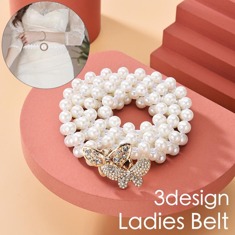 ベルト 細ベルト ウエストマーク スタイルアップ レディース 女性 フェイクパール パール調 蝶 ラインストーン 華やか お洒落 おしゃれ 大人可愛い