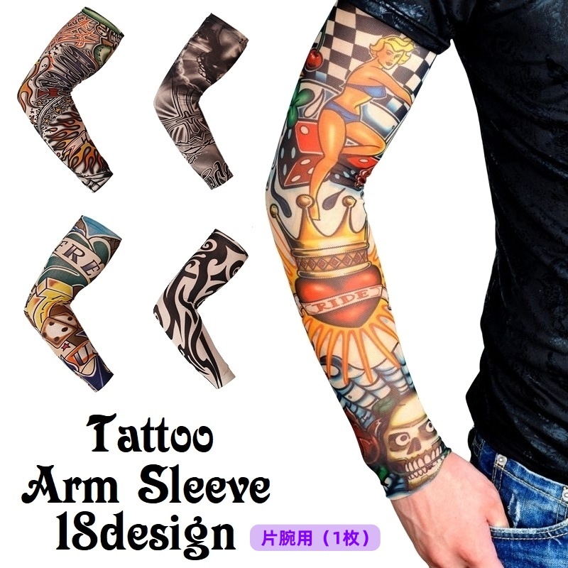 タトゥー アームカバー アームスリーブ 男女兼用 レディース メンズ 入れ墨風 刺青風 Tattoo風 伸縮性 紫外線対策 日焼け予防 コスプレ ハロ