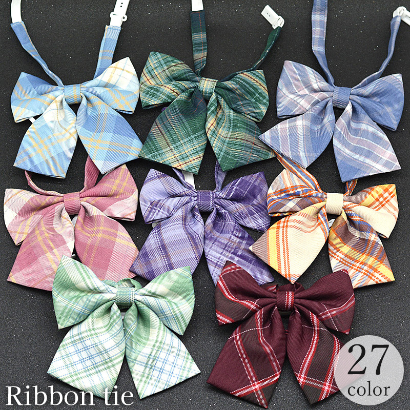 リボンタイ ボウタイ プレタイ スクールリボン 蝶ネクタイ レディース チェック柄 ワンタッチ コスプレ 学生服 制服 かわいい おしゃれ カラバリ豊