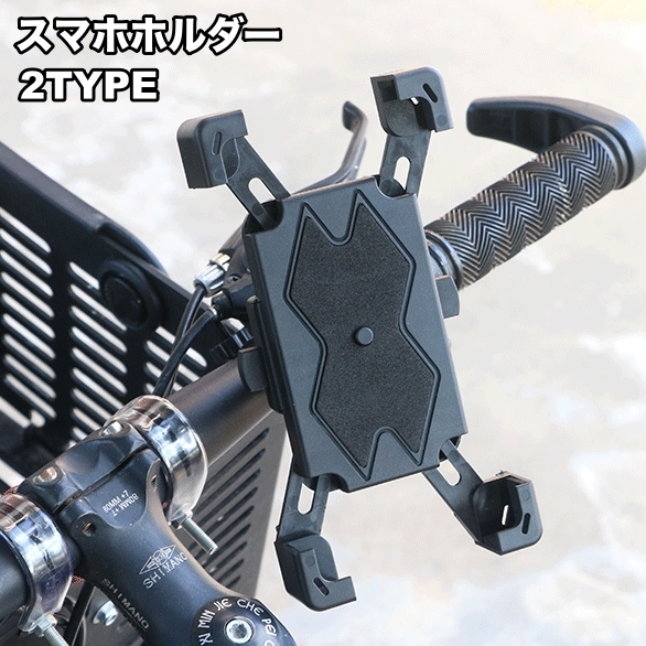 ハンドルバーに固定するタイプ、バイクなどのバックミラーに固定するタイプの