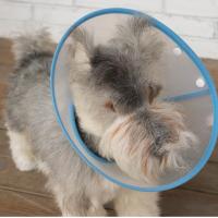傷口を舐めてしまうのを防ぐエリザベスカラーです♪