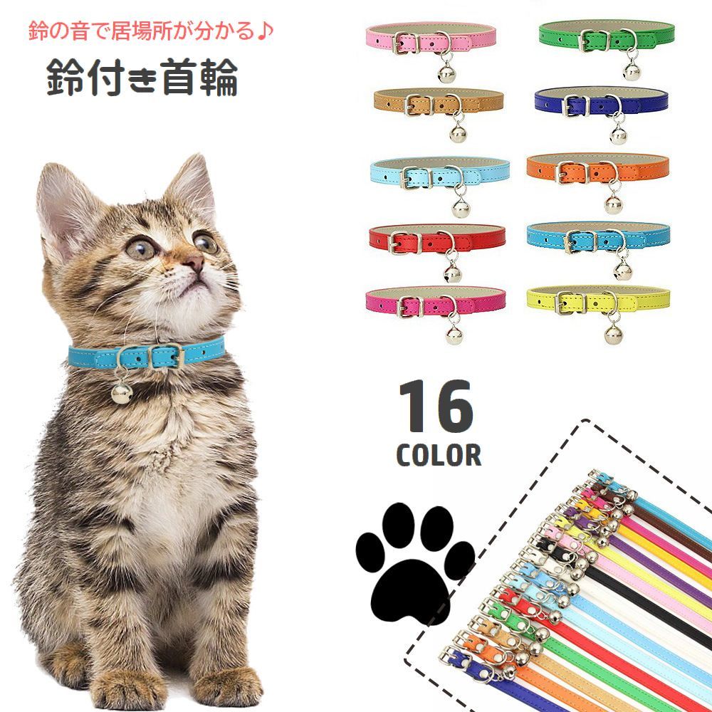 首輪 鈴付き カラー 猫用 犬用 ペット用品 ベルトタイプ 調節可能 レザー調 シンプル 無地 ベーシック 定番 フェイクレザー ネコ用 イヌ用 お散