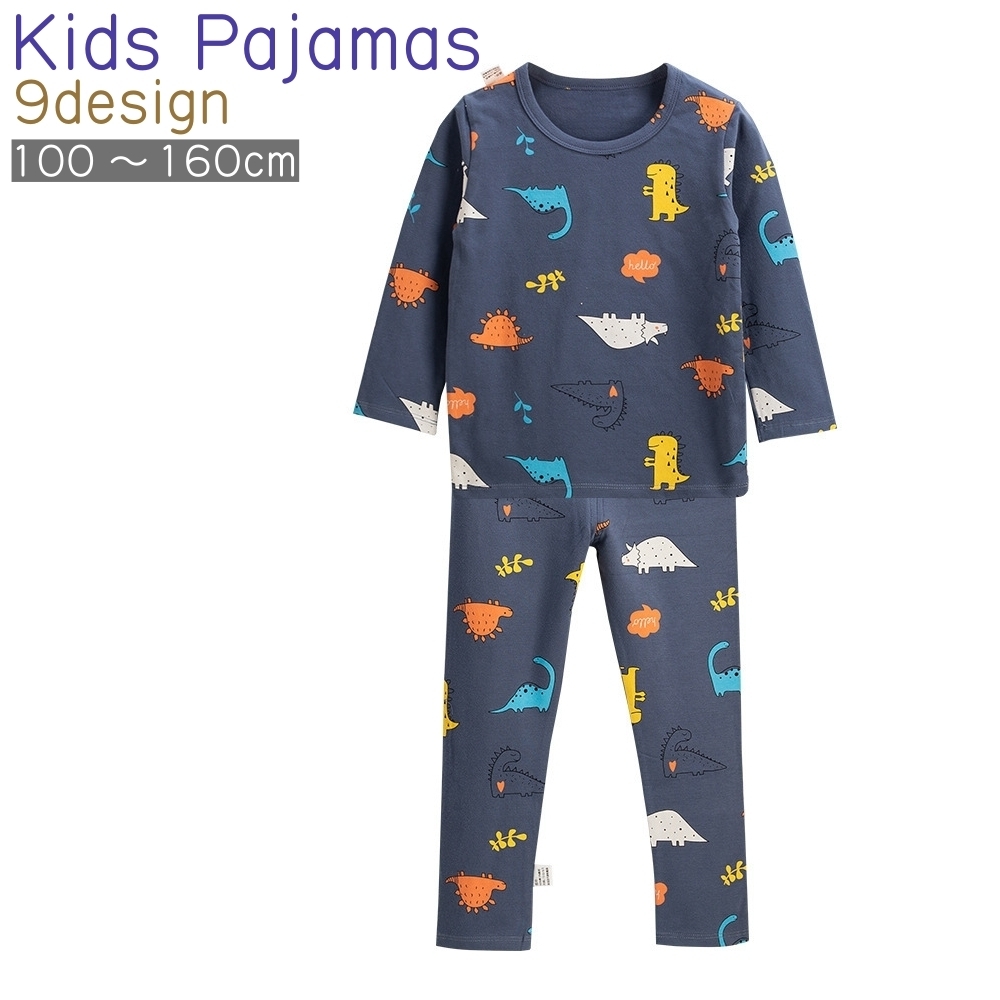 パジャマ 上下セット 2点セット キッズ 子供 男の子 女の子 寝間着 寝巻 インナー 長袖 長ズボン ラウンドネック 恐竜柄 アニマル柄 花柄 うさ