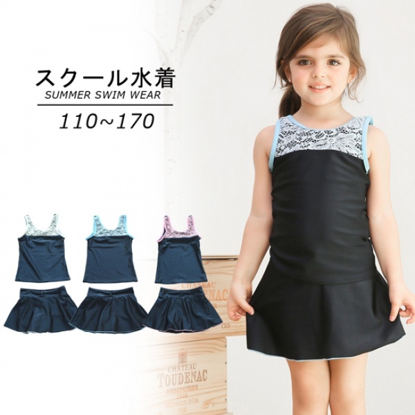スクール水着 セパレート 2点セット 上下セット キッズ ジュニア 女の子用 子供用 女子 女児 UPF50+のUVカット タンクトップ スカパン ス
