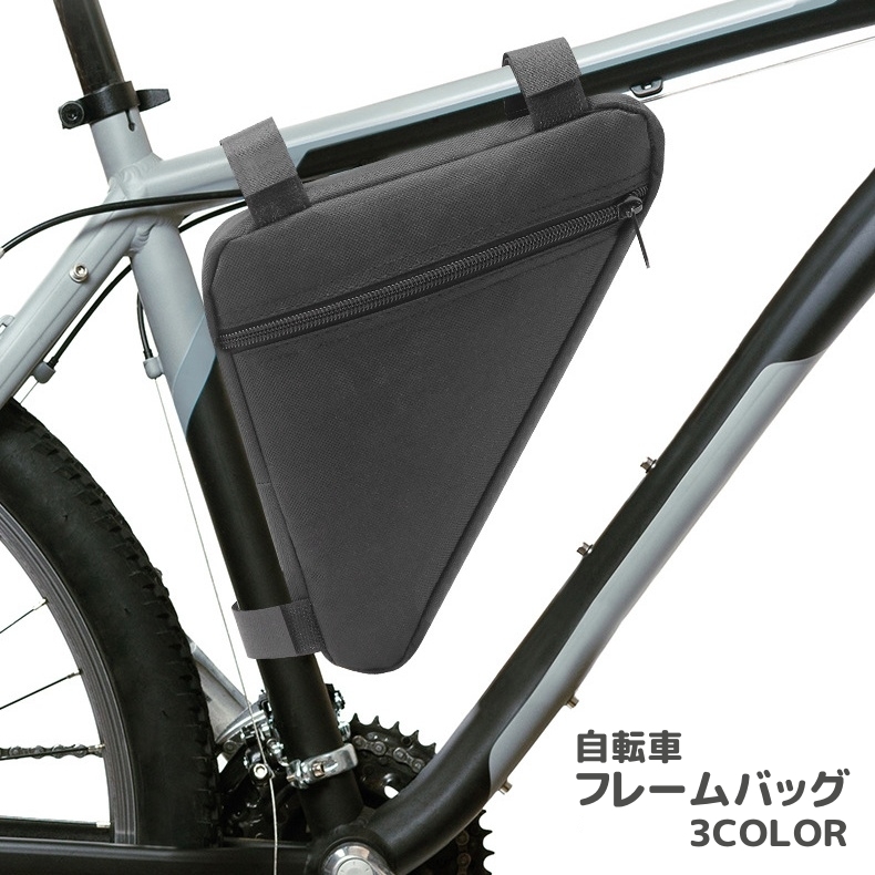 フレームバッグ 自転車バッグ トライアングル型 三角バッグ 自転車ポーチ 車体装着バッグ 面ファスナー マジック テープ 撥水 ファスナー シンプル