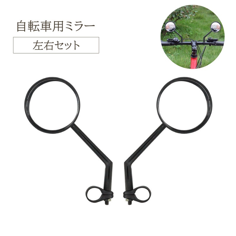自転車ミラー 1ペア 左右セット 自転車用品 サイクルミラー バックミラー 鏡 広角 ラウンド セーフティミラー 後方確認 サイドミラー ハンドル 角