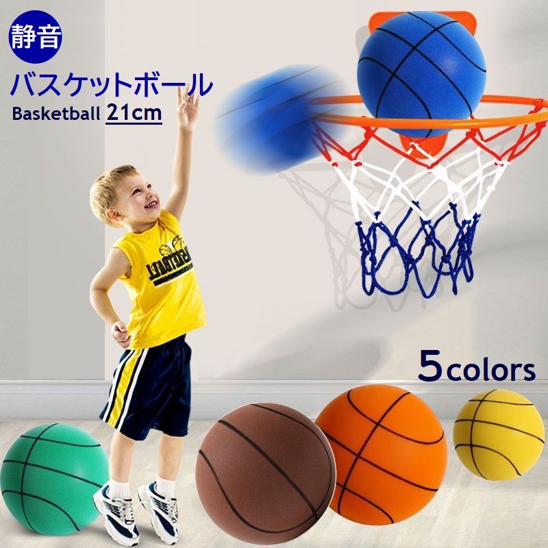 バスケットボール 21cm 静音 子供用 キッズ 騒音対策 室内 屋内 練習用 音が静か 5号 ボール遊び 男の子 女の子 オレンジ ブラウン グリー