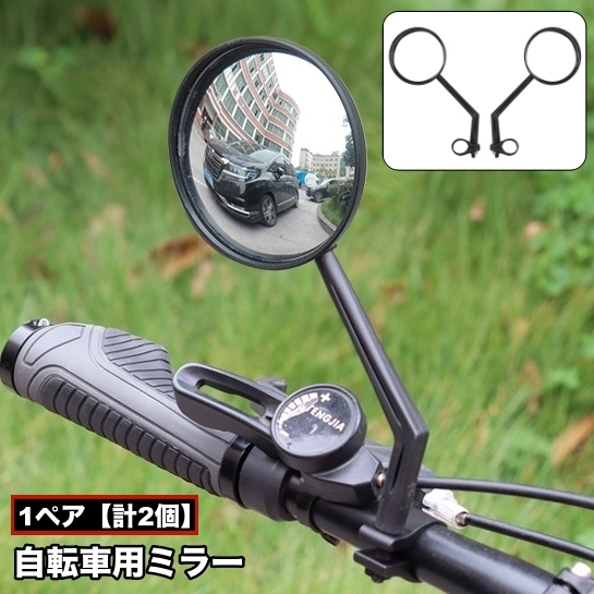 自転車用ミラー 1ペア 計2個 サイクルミラー サイドミラー バーエンドミラー 鏡 凸レンズ 取り付け簡単 360度回転 180度 角度調節可能 後方