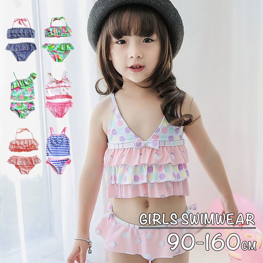 水着 ビキニ タンキニ セパレートタイプ 2点セット 3段フリル 女の子用 子供用 スイムウェア スイムウエア 夏 ビーチ プール 海水浴 キッズ ベ