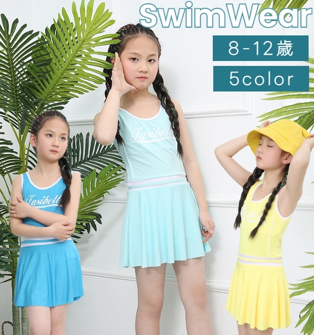 水着 キッズ スイムウェア ワンピース スポーティー 小学生 高学年 中学年 スカート 130cm 140cm シンプル 無地 ロゴ かわいい おしゃ