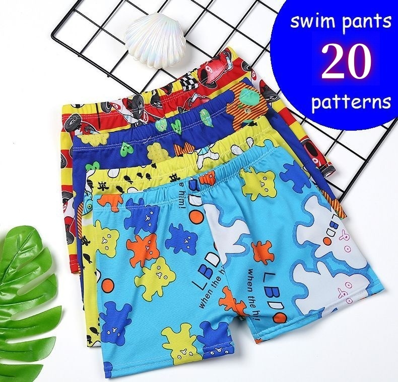 可愛い生き物たちや車など、可愛いプリント柄の子供用スイムパンツ。