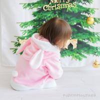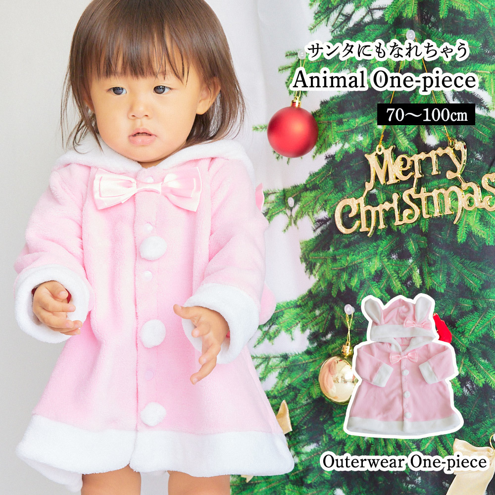 ベビーワンピース ウサギ サンタク フリース 長袖 膝上 フード付き 耳付き しっぽ付き かわいい 女の子 赤ちゃん リボン 前開き サンタクロース