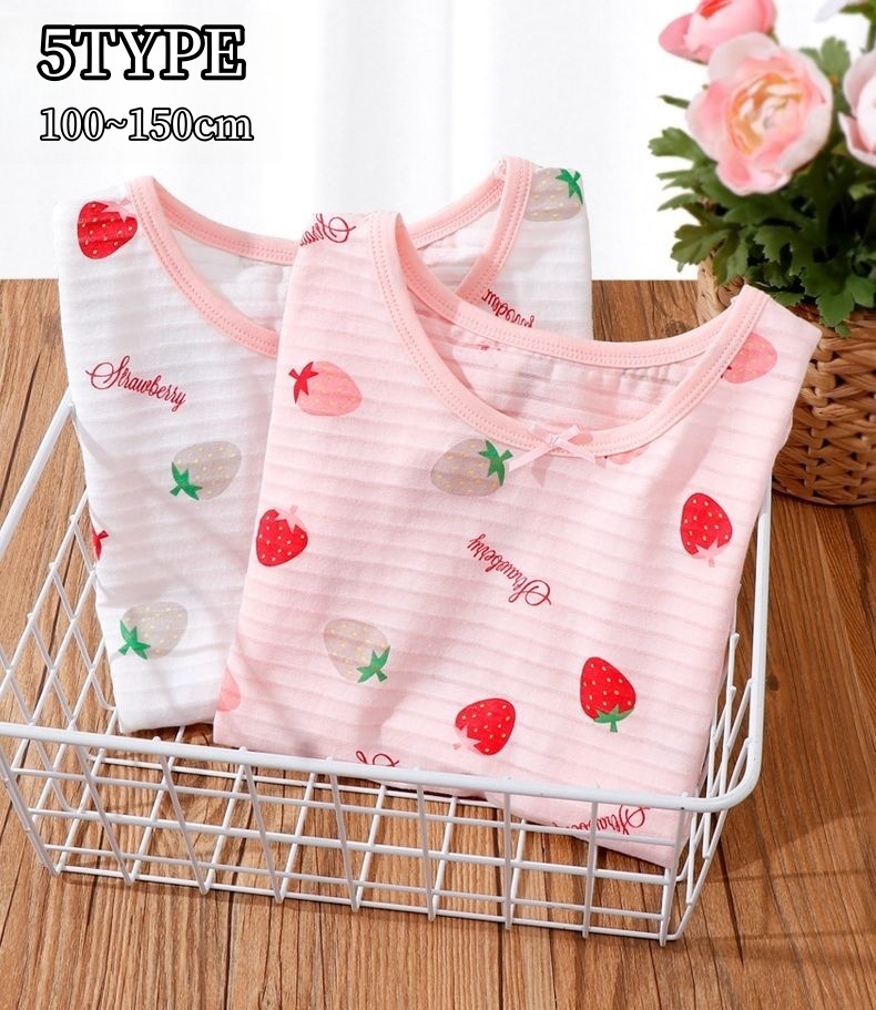 ルームウェア 部屋着 パジャマ ネグリジェ ワンピース キッズ 女の子 子供服 半袖 ノースリーブ 可愛い イチゴ柄 薄手 春夏 寝巻き 寝間着 ナイ
