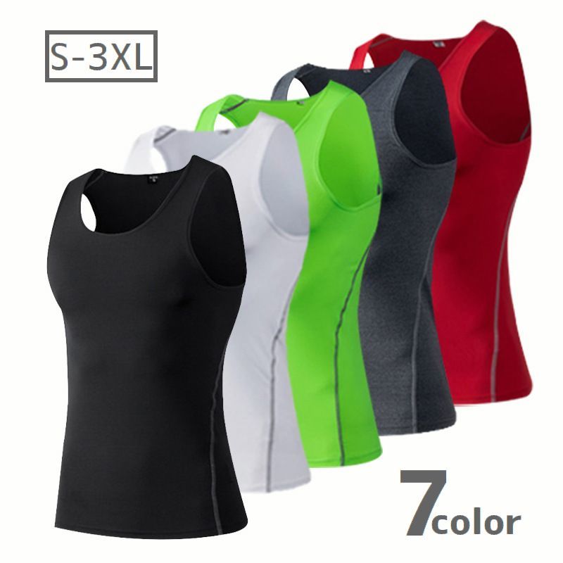 タンクトップ トップス メンズ 男性 ノースリーブ 袖なし ラウンドネック タイトフィット 大きめサイズ サイドライン 速乾 通気 無地 シンプル ス