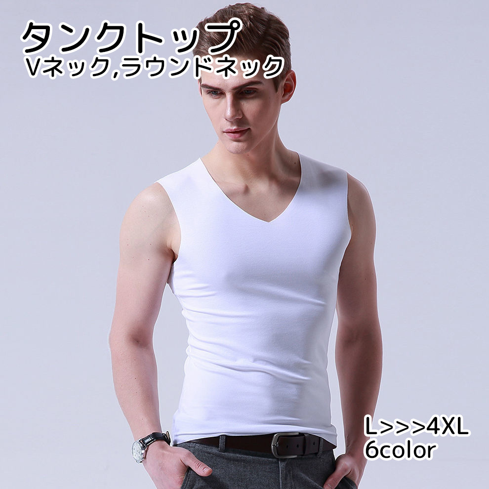 タンクトップ メンズ トップス Vネック ラウンドネック 大きめ ホワイト ブラック グレー ブルー シンプル 伸縮性