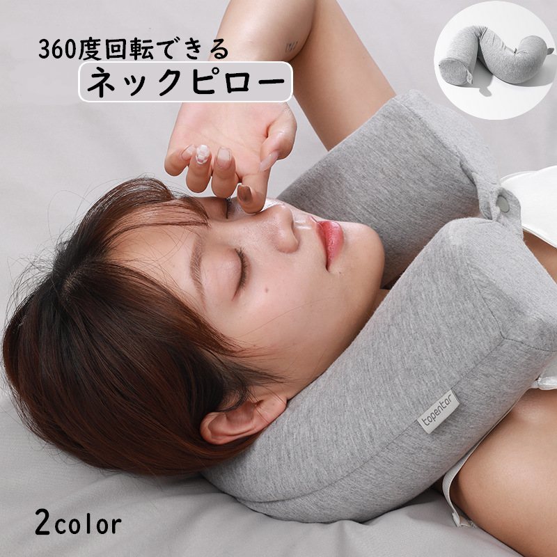 ネックピロー 首枕 円筒型 U字型 ヘッドレスト 低反発 曲線 腰あて 背もたれ スナップボタン ファスナー お昼寝 仮眠 車内 リラックス 無地 シ