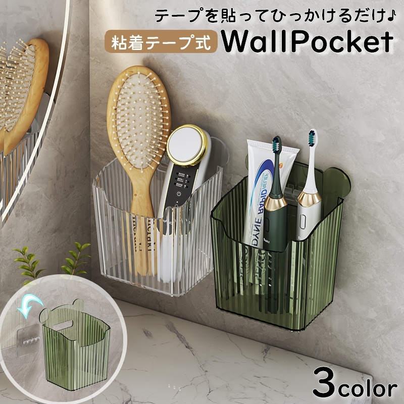 ウォールポケット ウォールラック 壁面ラック 壁面収納 収納ポケット 小物入れ 粘着テープ式 クリアカラー 貼り付け 穴あけ 工具不要 おしゃれ シン
